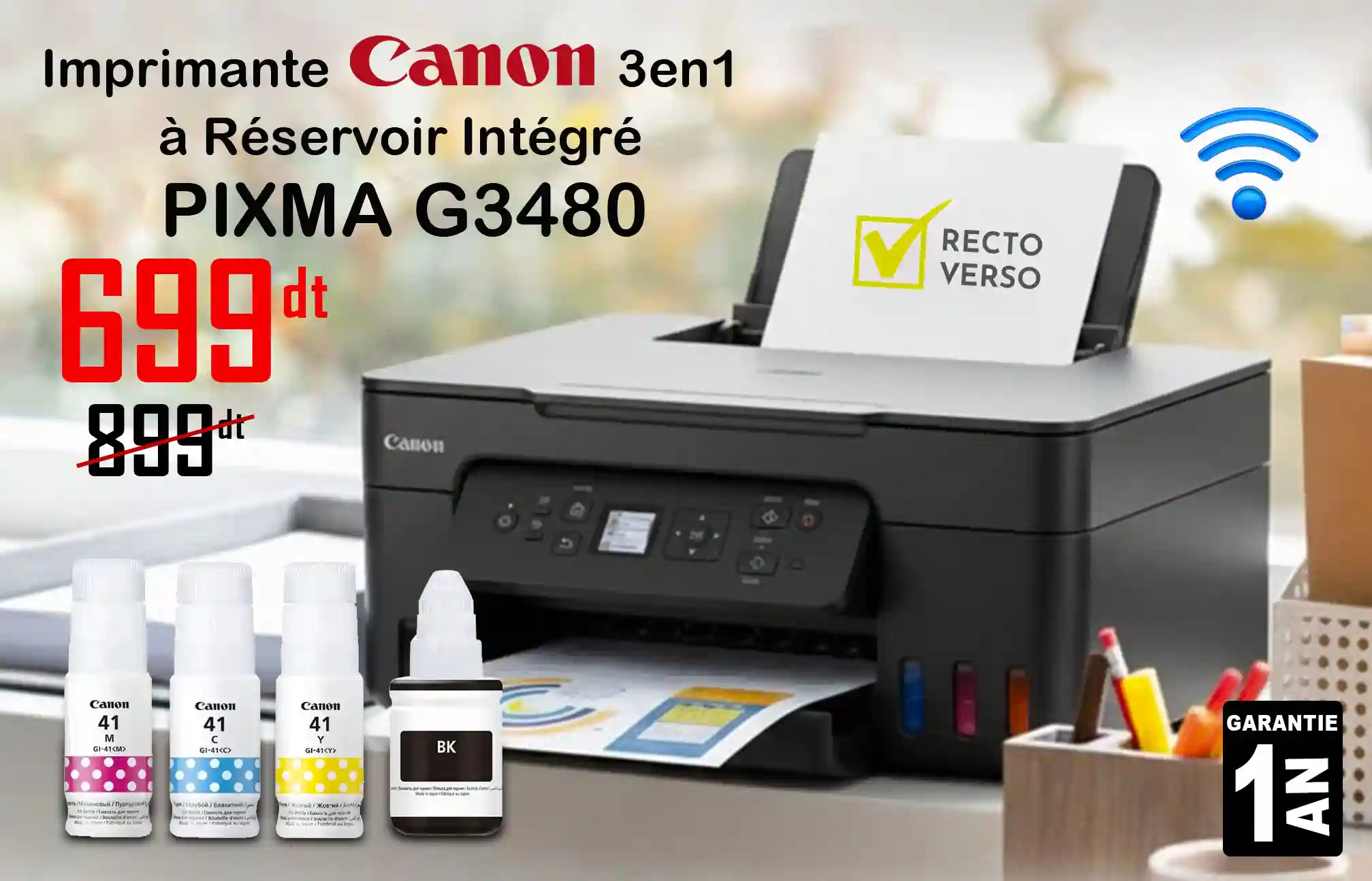 Imprimante 3En1 CANON PIXMA G3480 à Réservoir Intégré Wifi