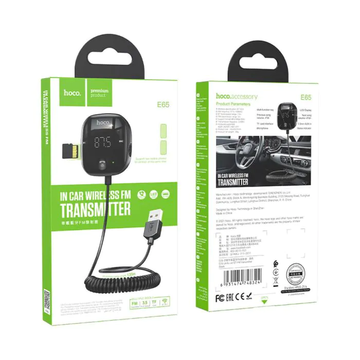Le HOCO E65 est bien plus qu'un simple transmetteur FM. Il offre une connectivité Bluetooth sans faille, vous permettant d'écouter facilement vos playlists préférées ou de prendre des appels en mains libres. Vous n'aurez plus à vous soucier des fils encombrants dans votre voiture, grâce à son câble de 1,35 mètre qui vous donne la liberté de le placer où vous le souhaitez. La principale caractéristique du Transmetteur Bluetooth FM HOCO E65 Noir est sa capacité à émettre vos musiques préférées directement sur votre autoradio. Plus besoin de chercher une station FM claire ou de vous soucier de la qualité du signal avec ce gadget high-tech. Ce produit est conçu pour rendre votre expérience de conduite plus agréable et sans tracas. Avec le Transmetteur Bluetooth FM HOCO E65 Noir, vous pouvez facilement contrôler votre musique et vos appels sans quitter la route des yeux. Alors, pourquoi attendre ? Améliorez votre expérience de conduite aujourd'hui avec le Transmetteur Bluetooth FM HOCO E65 Noir. Cliquez ci-dessous pour l'ajouter à votre panier dès maintenant !