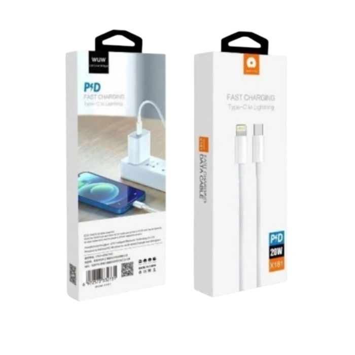 Câble De Charge Type-C Vers Lighting WUW-X181 PD 20W – Le compagnon de charge idéal pour vos appareils. Doté d'une puissance de 20W, ce câble offre une charge rapide et efficace pour vos appareils compatibles. Sa connexion Type-C vers Lighting assure une compatibilité étendue avec une variété d'appareils.