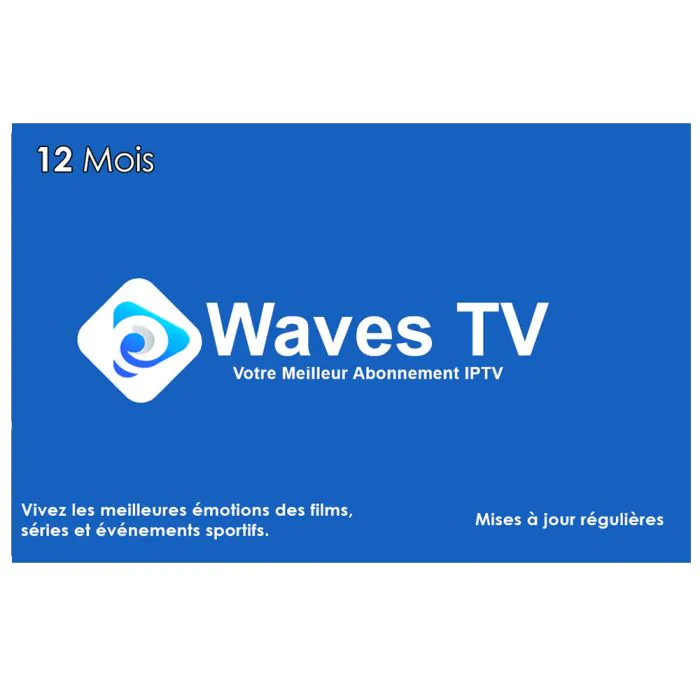 Transformez votre expérience de divertissement à domicile avec la Carte Abonnement IPTV 12 mois WavesTV. Cet abonnement vous offre une année complète de contenu de qualité supérieure directement sur votre écran, vous permettant de profiter d'une vaste sélection de chaînes et de programmes adaptés à tous les goûts.