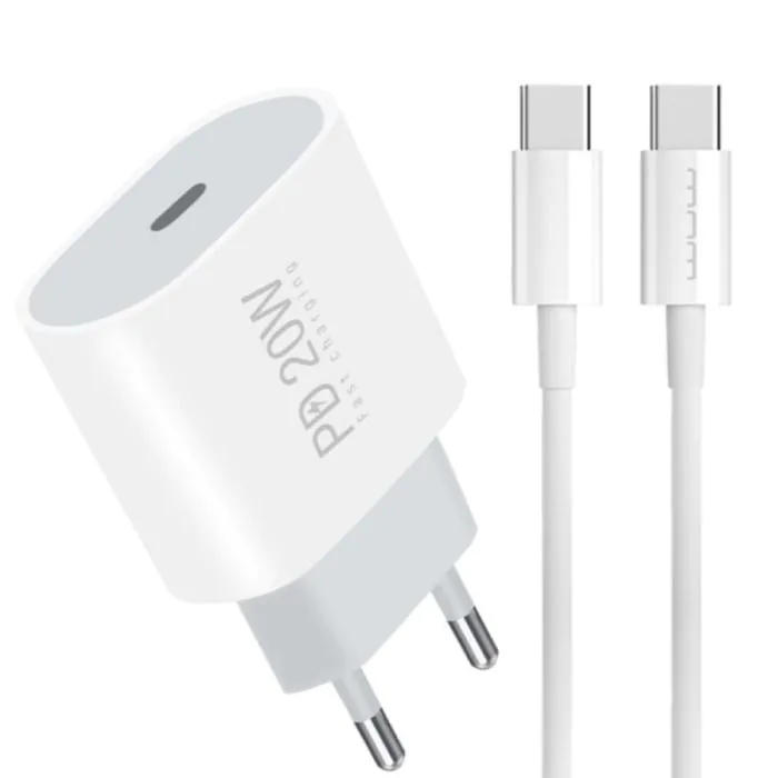 Chargeur WUW T79C PD3.0 20W + Cable Type-C vers Type-C - Blanc