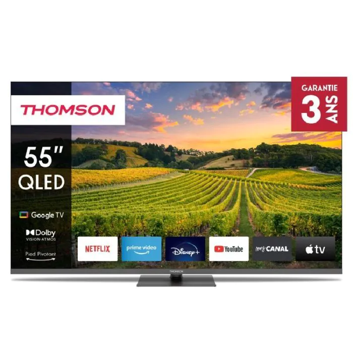 Et pour votre tranquillité d'esprit, la TV Thomson 55" 55QG5C14 QLED Google Tv est couverte par une garantie de 3 ans.