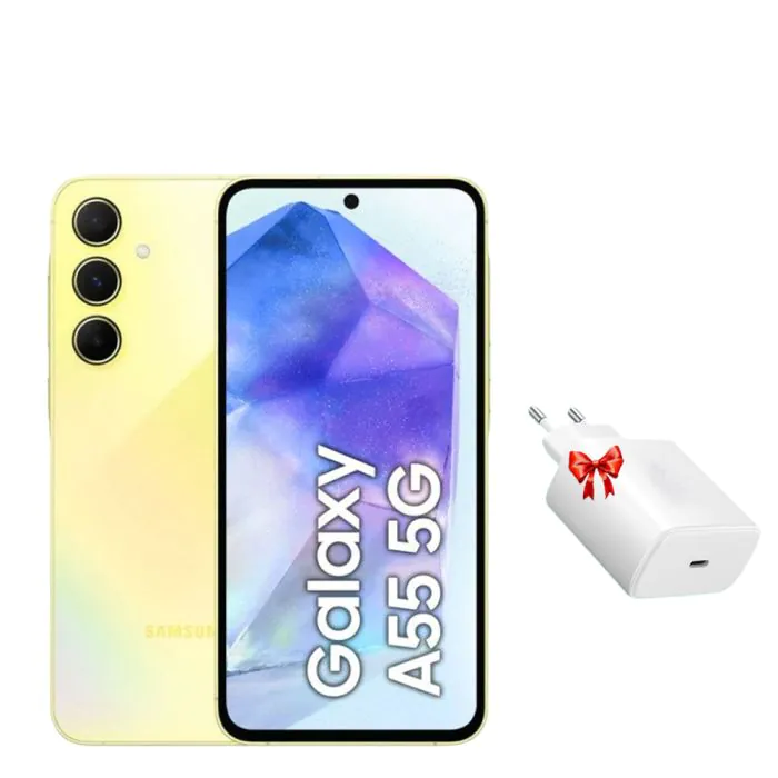 Smartphone SAMSUNG GALAXY A55 8GO 256GO Yellow + Chargeur Secteur 45W Offert