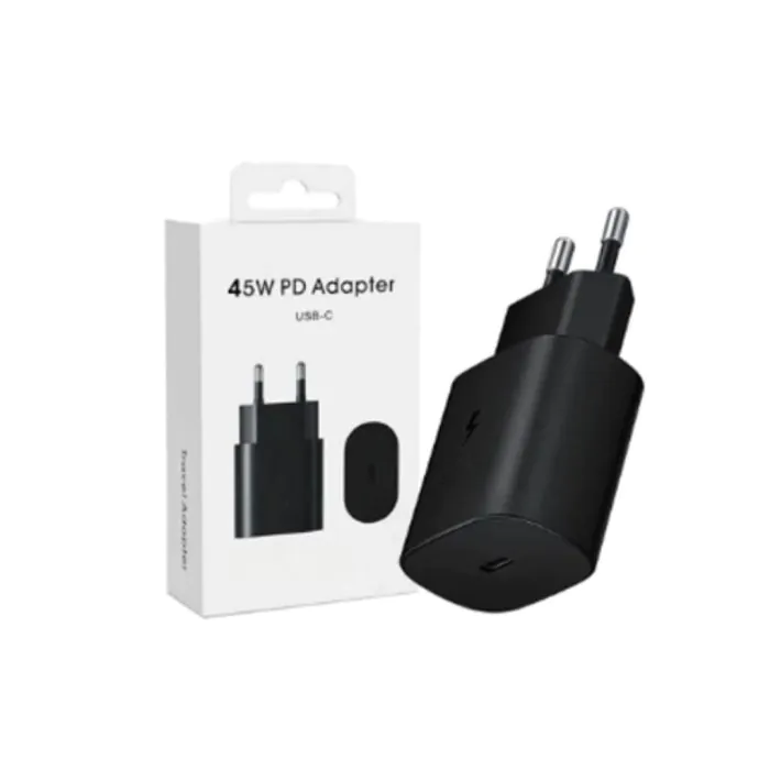 Tête Chargeur TYPEC 45W Noir : Un partenaire de charge idéal pour votre quotidien. Optez pour la simplicité, l'efficacité et la rapidité avec ce chargeur conçu pour s'adapter à tous vos appareils compatibles TYPEC.