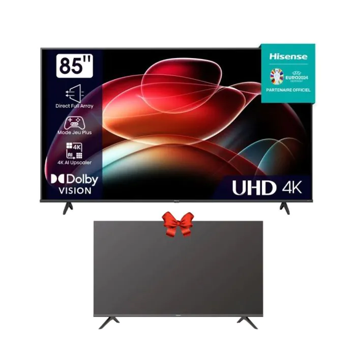 TV HISENSE 85" Série A6K 4K UHD Smart - Noir + TV LED 43A4200G Gratuit