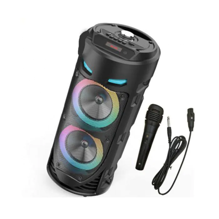 Ce haut-parleur est non seulement élégant avec sa couleur noire sobre, mais il est aussi pratique grâce à sa fonctionnalité SD qui vous permet de lire vos playlists directement depuis votre carte mémoire. Sa batterie rechargeable assure des heures de musique ininterrompue, idéal pour vos sorties en plein air ou vos soirées à la maison.